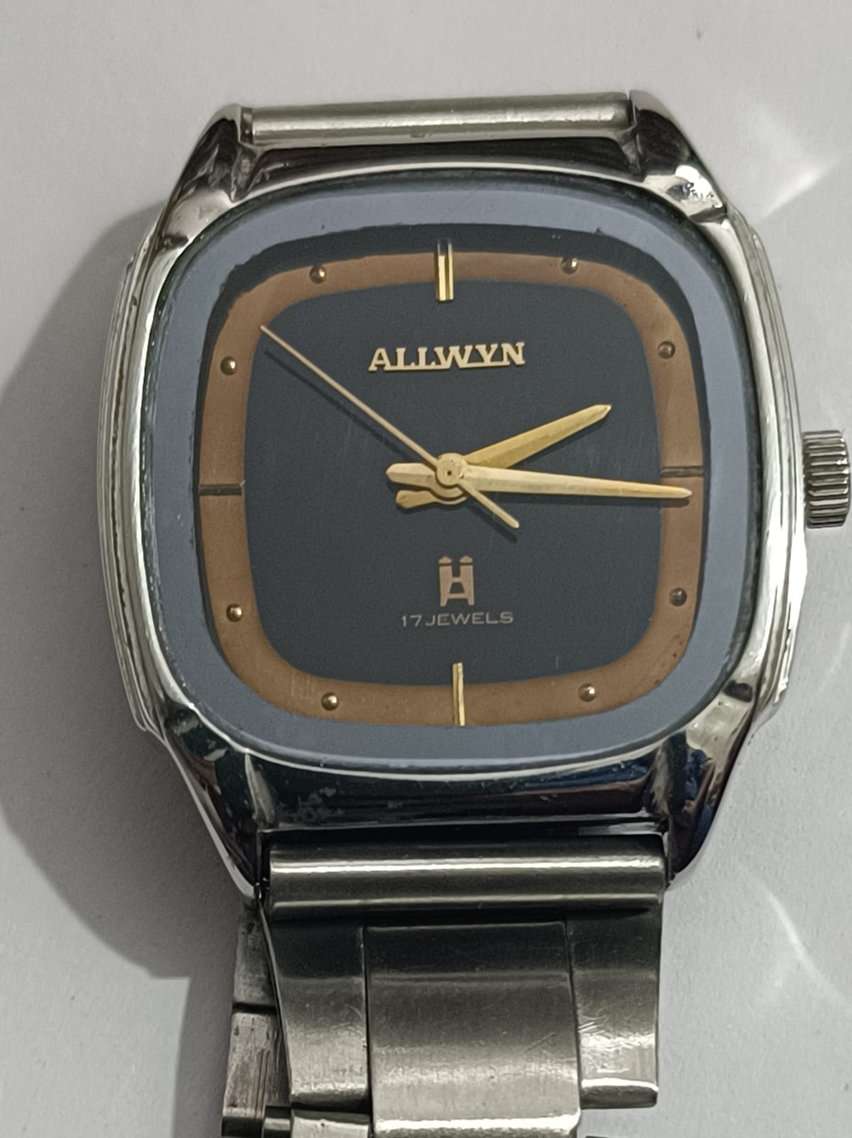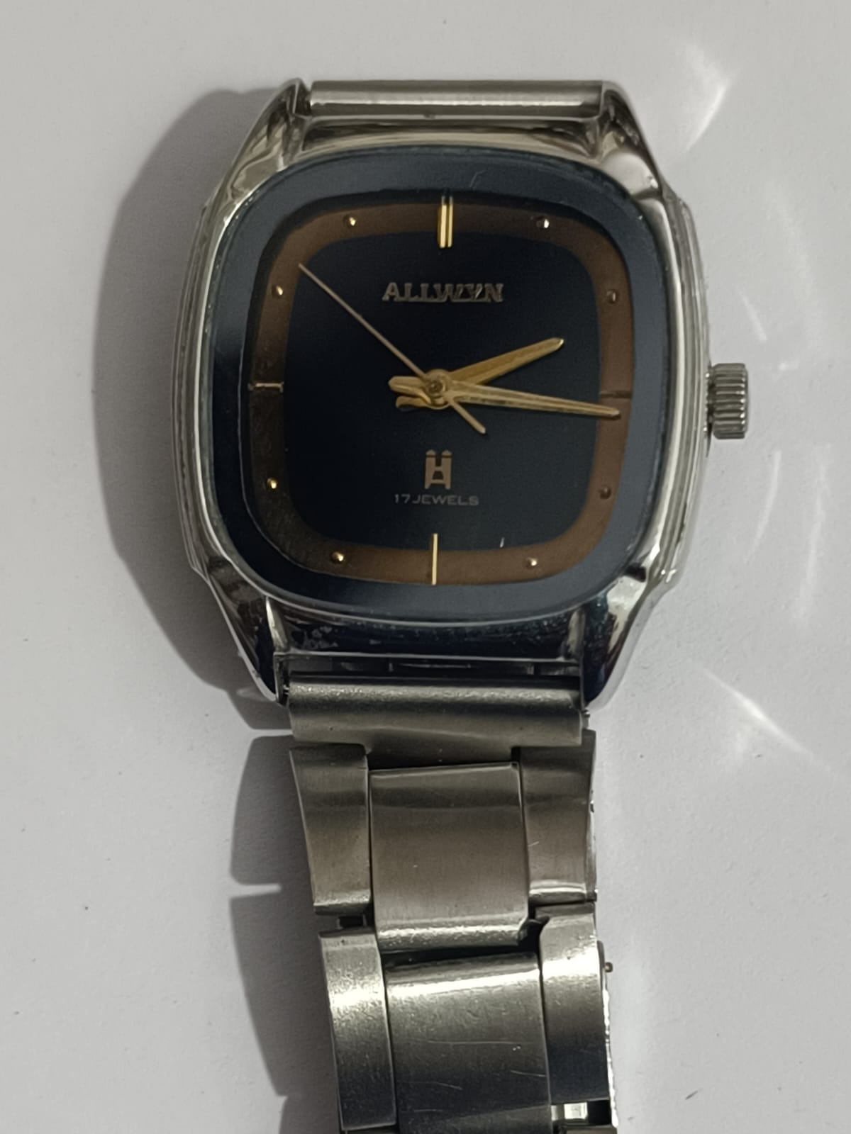 Vintage Allwyn by Seiko Mechanical winding with beautiful Sunburst Black and Gold Dial in working condition, size 35mm including crown