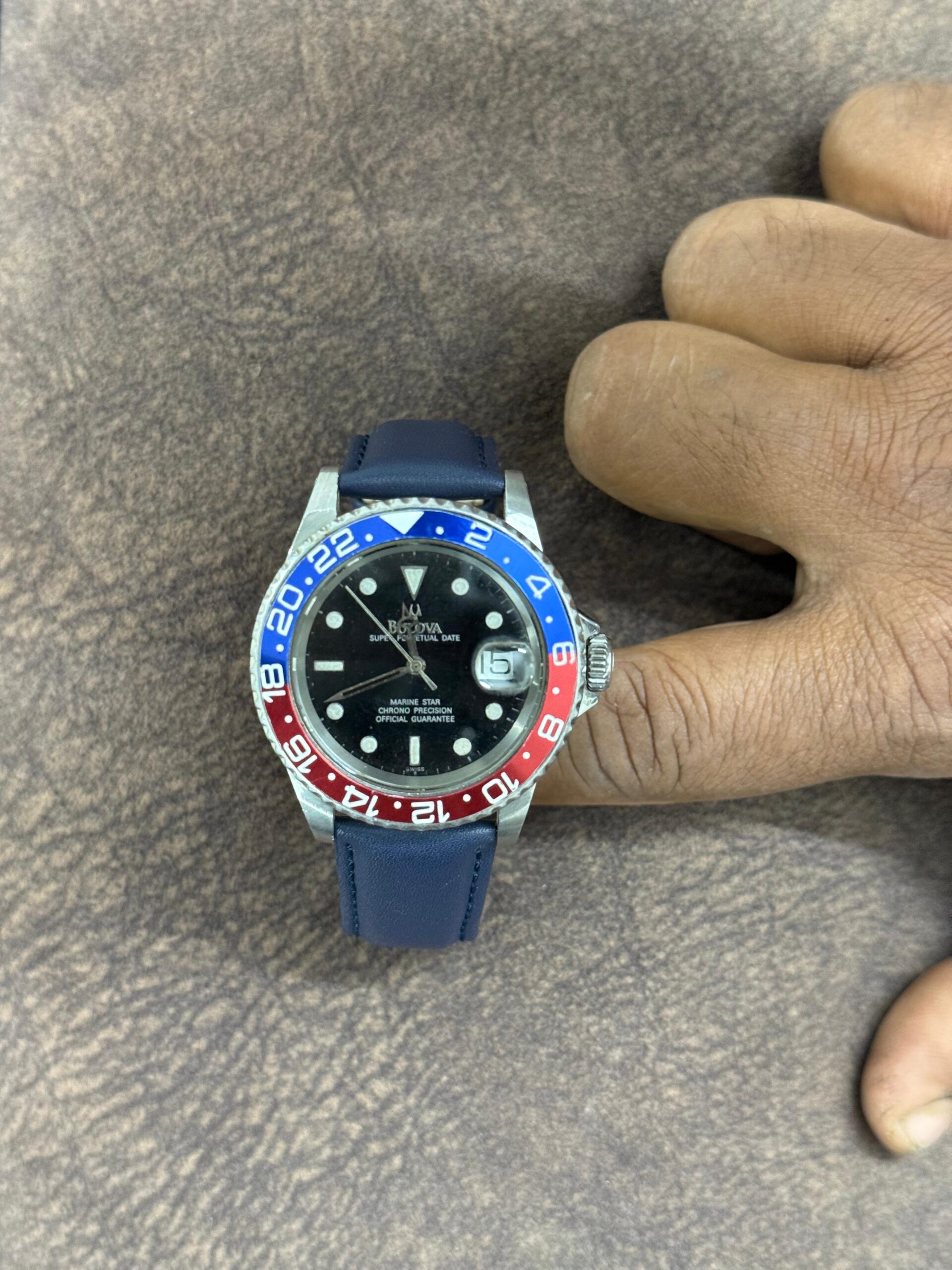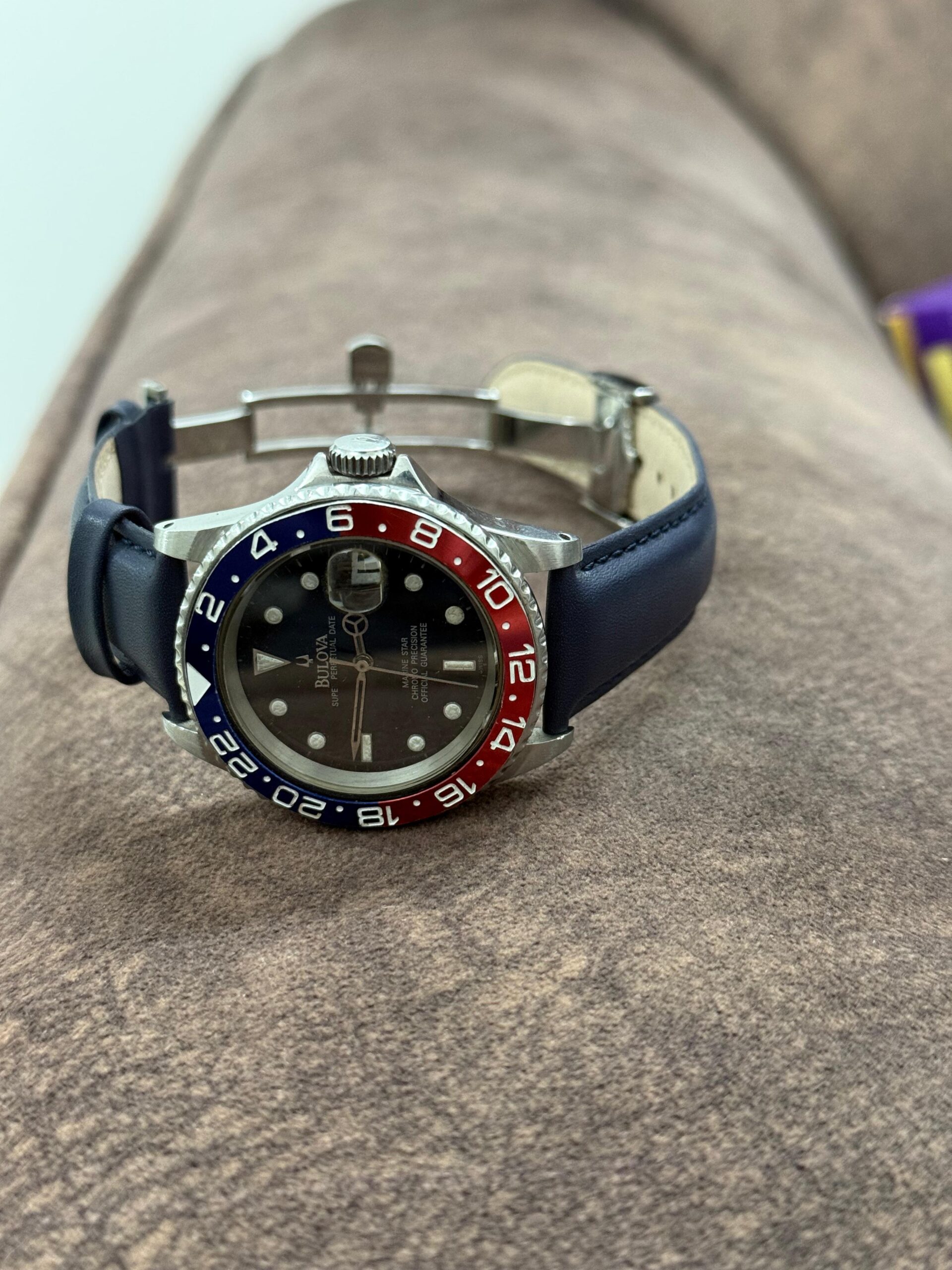 Beautiful Bulova Divers Swiss Automatic with Sunburst Black dial with Pepsi Rotating Bezel, crown,in working condition