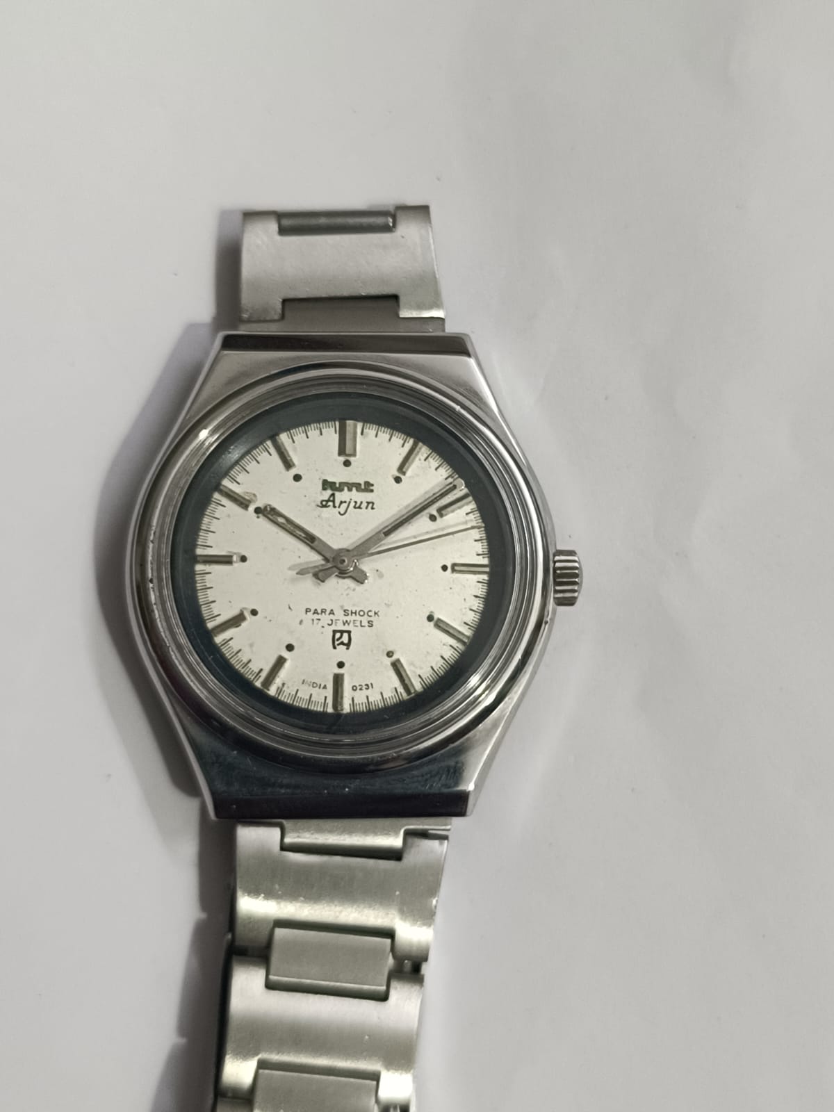 Vintage HMT Arjun with beautiful Black and White Dial Mechanical winding in working condition, size 36mm including crown