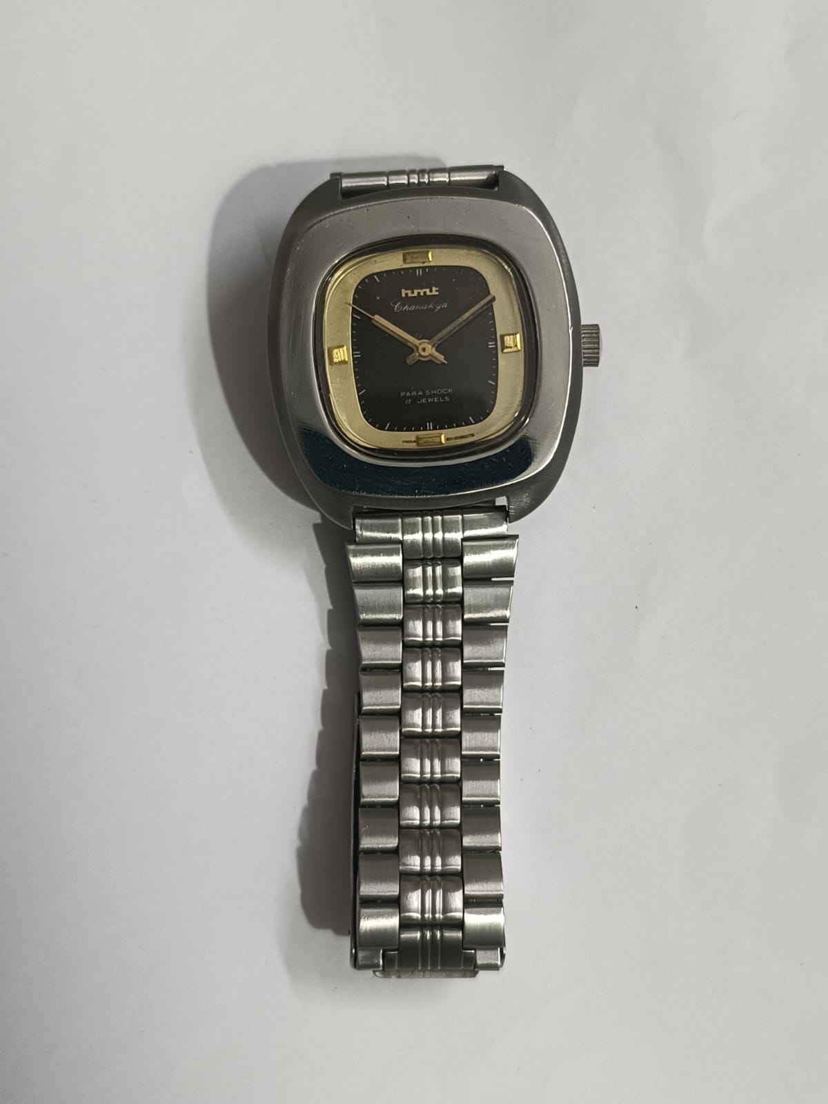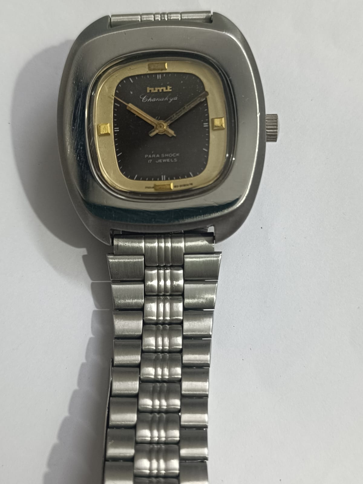 Vintage HMT Chanakya with Maroon and Golden Dial Mechanical winding in working condition, Heavy model size 39mm including crown