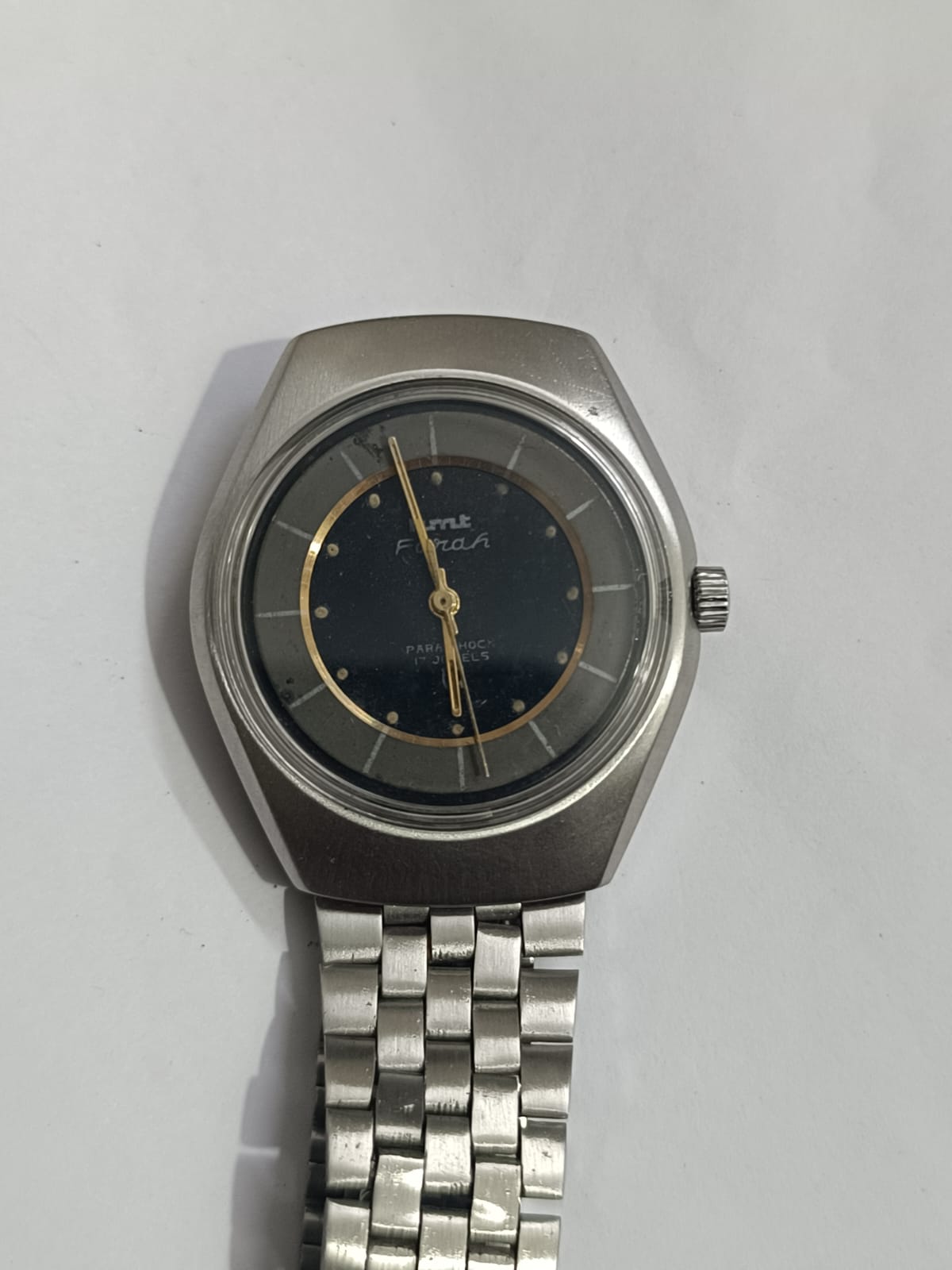 Vintage HMT Farah with Black and Gray Dial Mechanical winding in working condition, size 36mm including crown