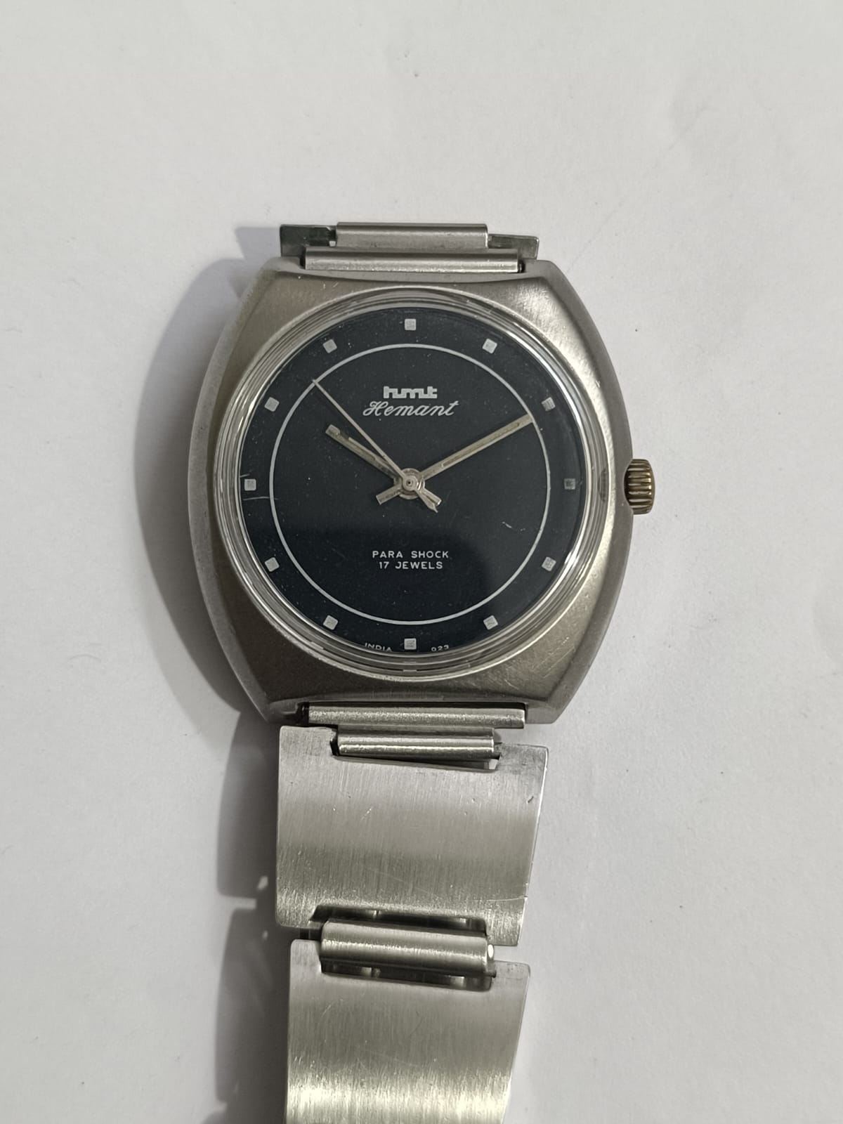 Vintage HMT Hemant Mechanical winding with Black Dial in working condition, size 38mm including crown