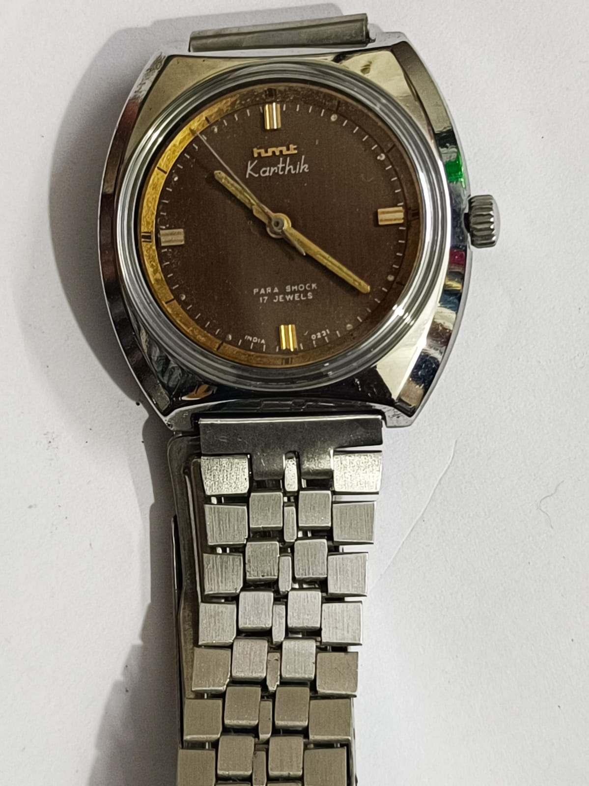 Vintage HMT Karthik with beautiful Sunburst Maroon Dial in working condition, size 37mm including crown
