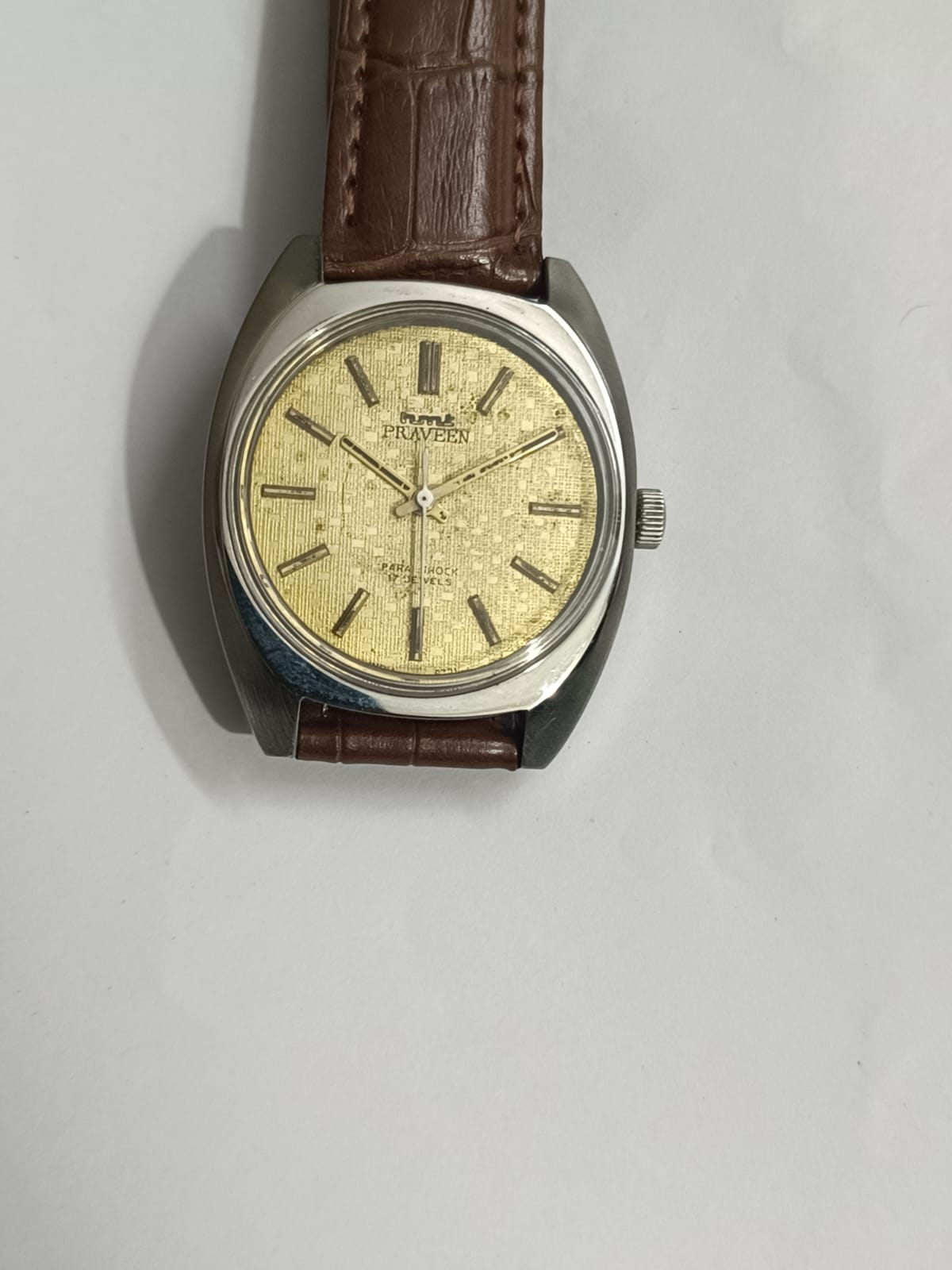 Vintage HMT Praveen with Rare Golden Pattern Dial Mechanical winding in working condition, size 36mm including crown