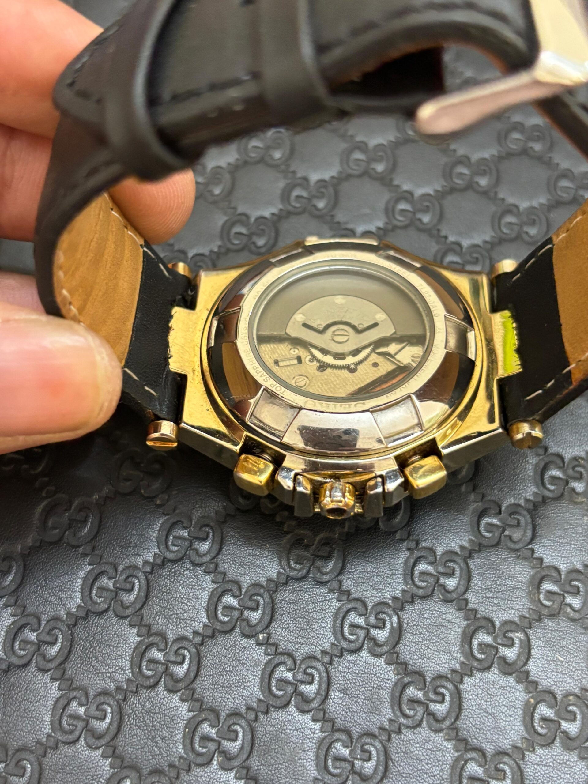 A lovely seiko Coutura Kinetic chronograph SNL038, Kinetic powered quartz , v large size of 44mm , preowned no box or papers , all stock parts except the strap (replaced ) , features date/chrono and separate subdial for the time