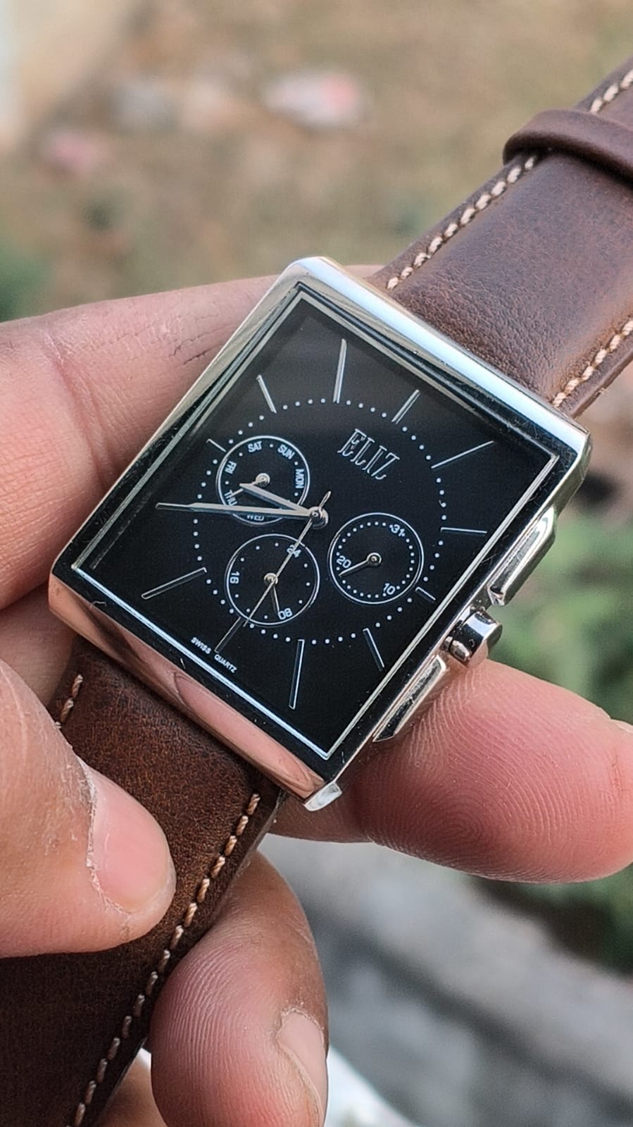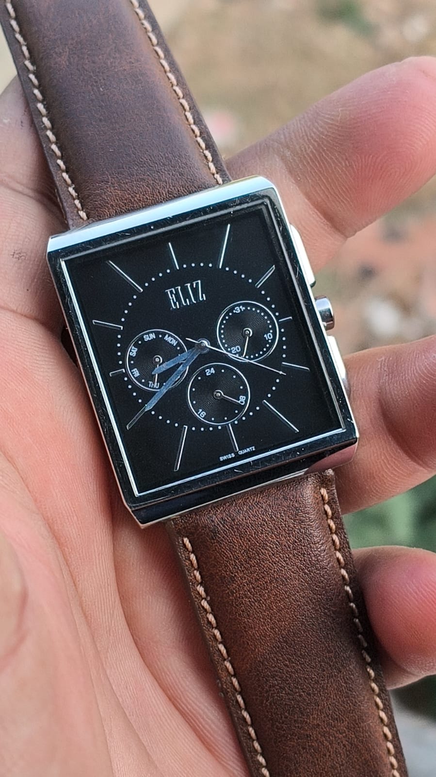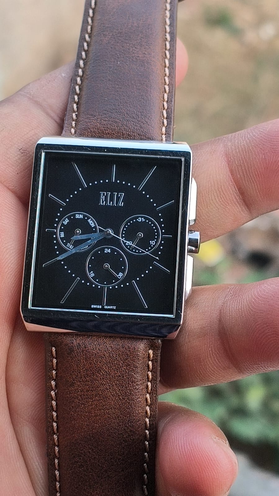 Beautiful preloved Swiss eliz multifunction quartz watch black dial excellent condition