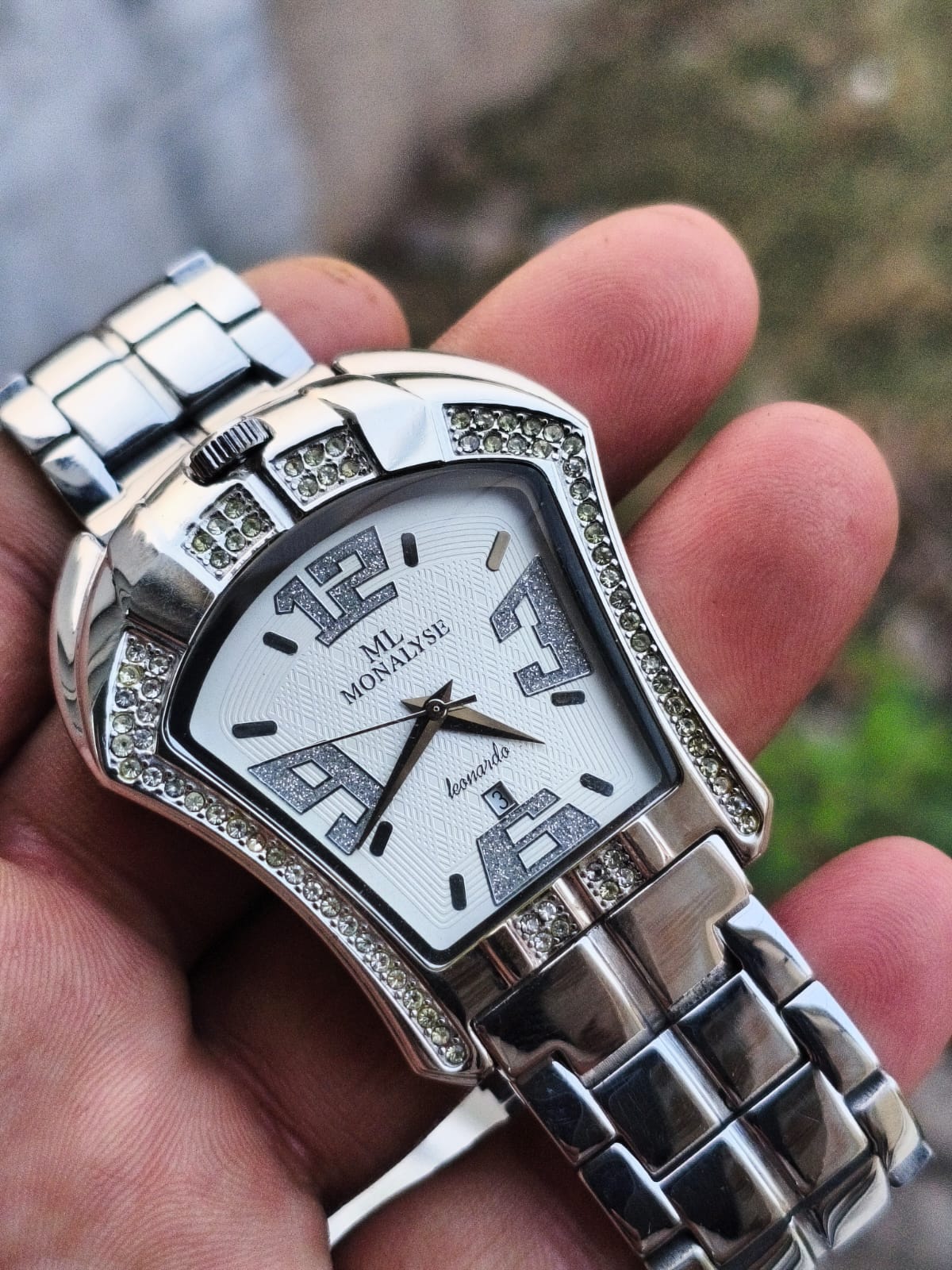 Beautiful preloved Swiss made monalyse quartz watch stone studded bezel excellent condition all original case size 40mm