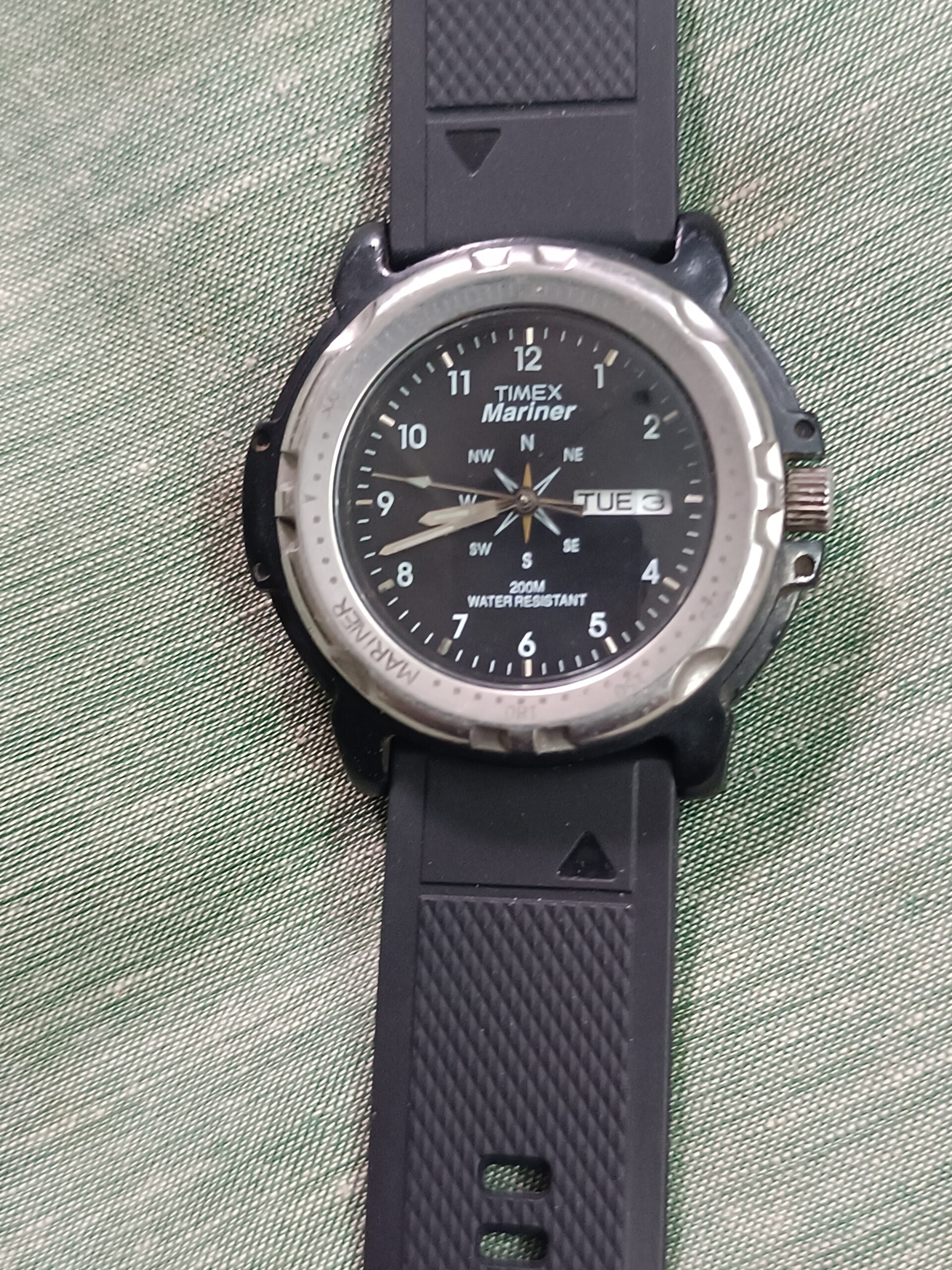 Timex Mariner Quartz with beautiful Black Dial in working condition Gent’s size,(Strap Buckle changed)