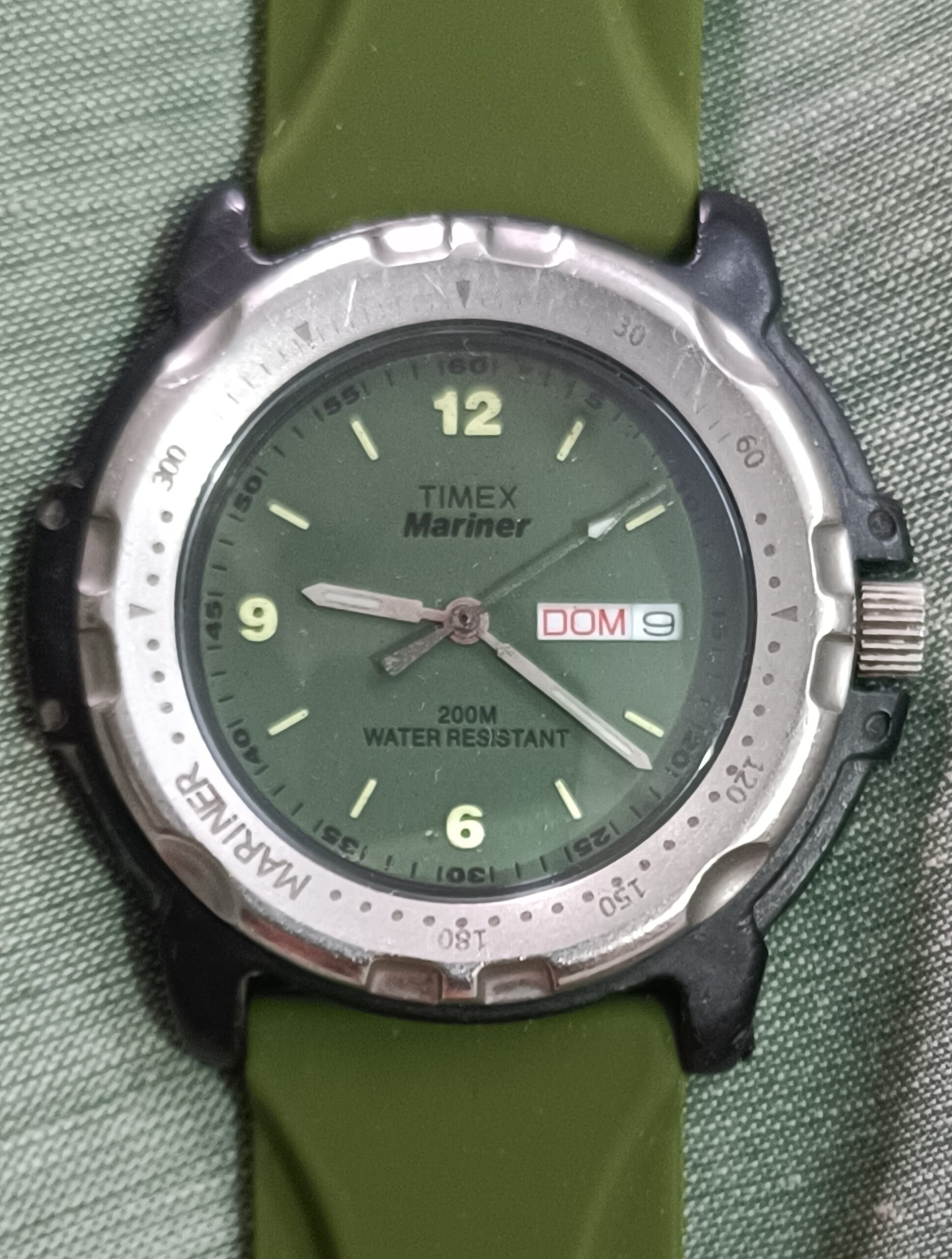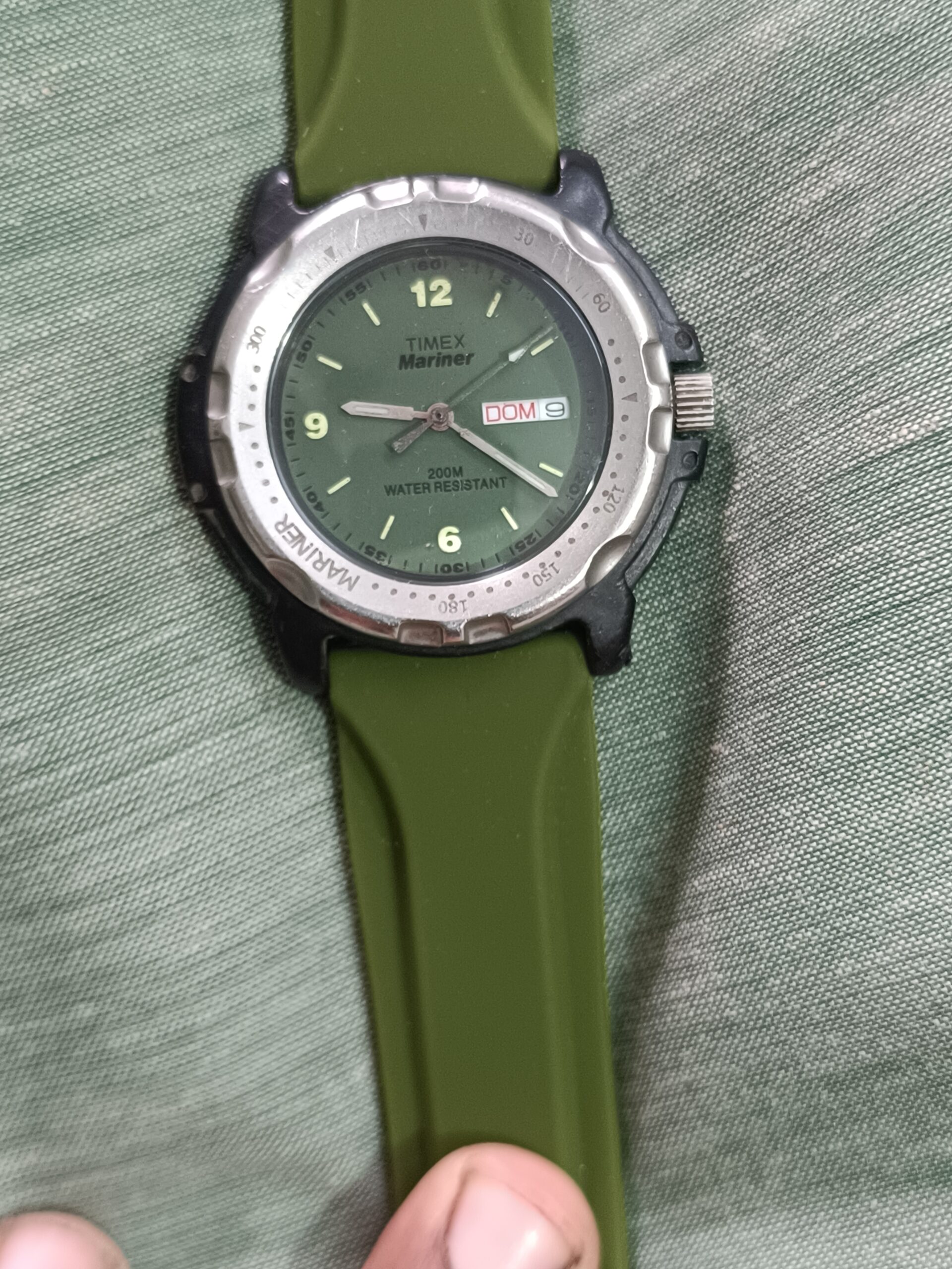 Timex Mariner Quartz with beautiful Green Dial in working condition Gent’s size,(Strap Buckle changed)