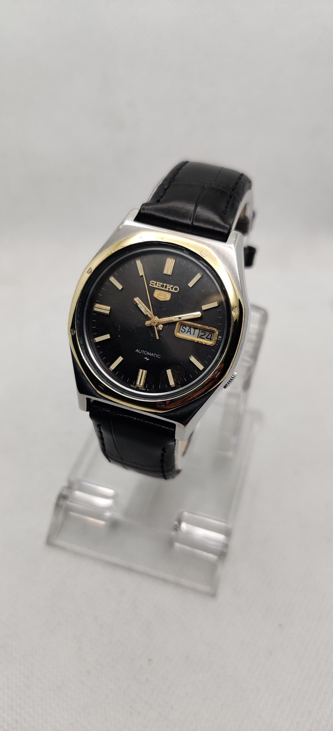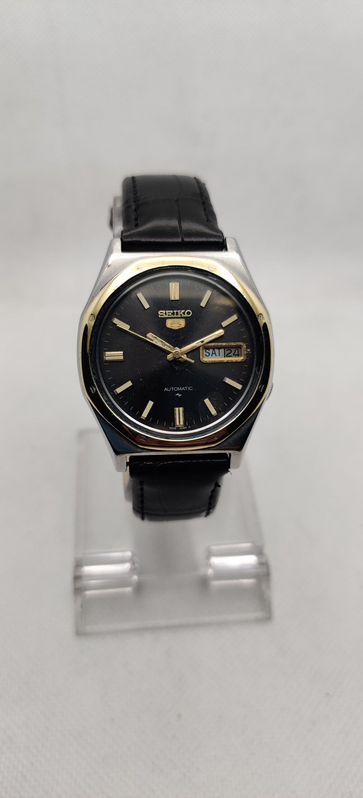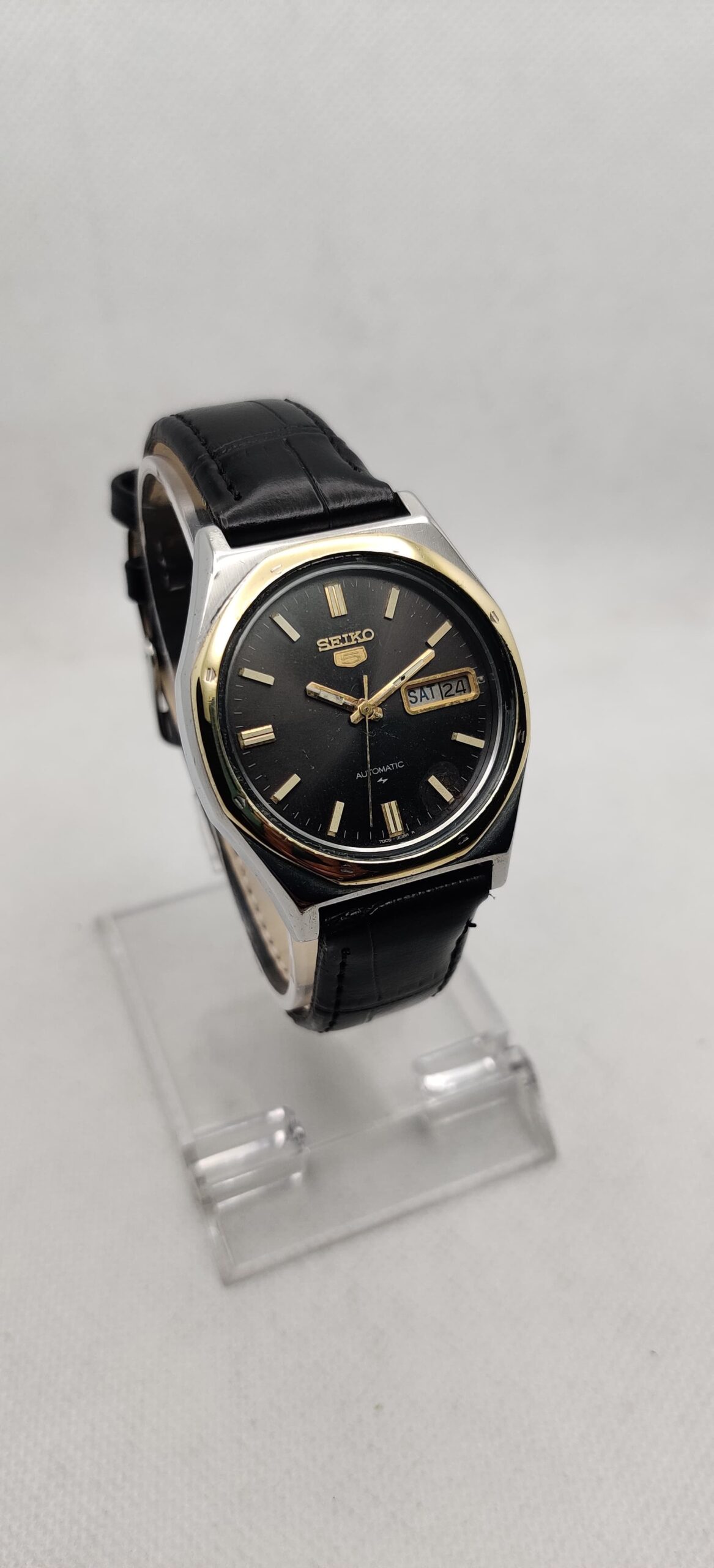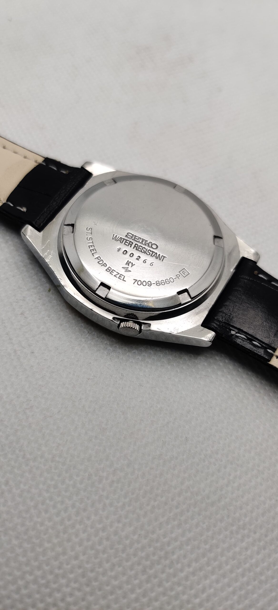 Ultra rare Seiko 5 ‘Royal Oak’ automatic Day-Date watch, ref 7009-8660 variant. 100% working. Genuine cal 7009, 17J Movement. Original dial & hands, has nice patina. Seiko “Daini” factory logo on dial & caseback. Watch size 36mm lug size 18mm. Comes with a new Art leather strap.