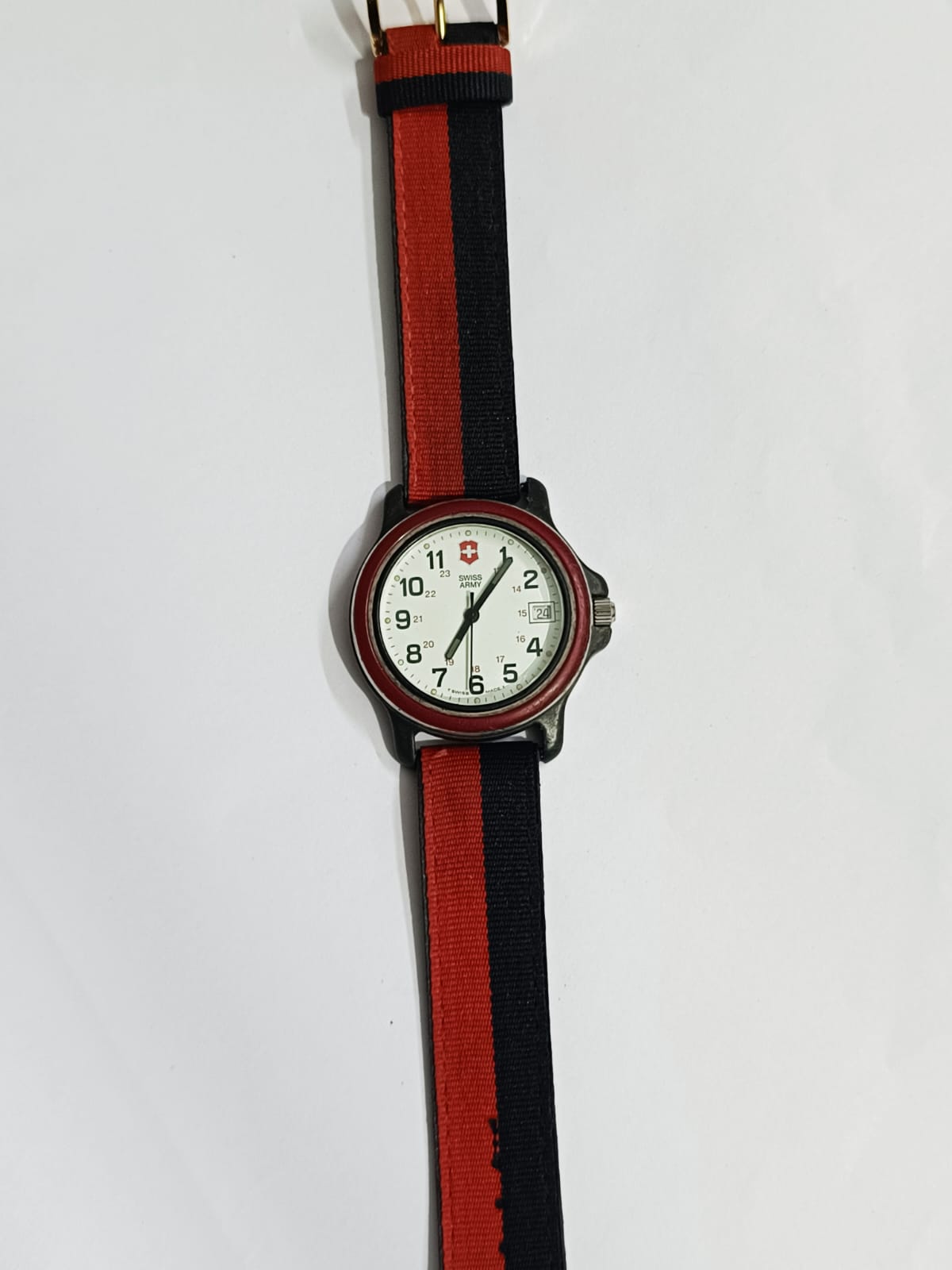Wenger Swiss Army Quartz with beautiful Arabic numerals dial in working condition, Swiss Rhonda movement,New Vintage Strap and Buckle Changed , Size 40mm including Signed crown