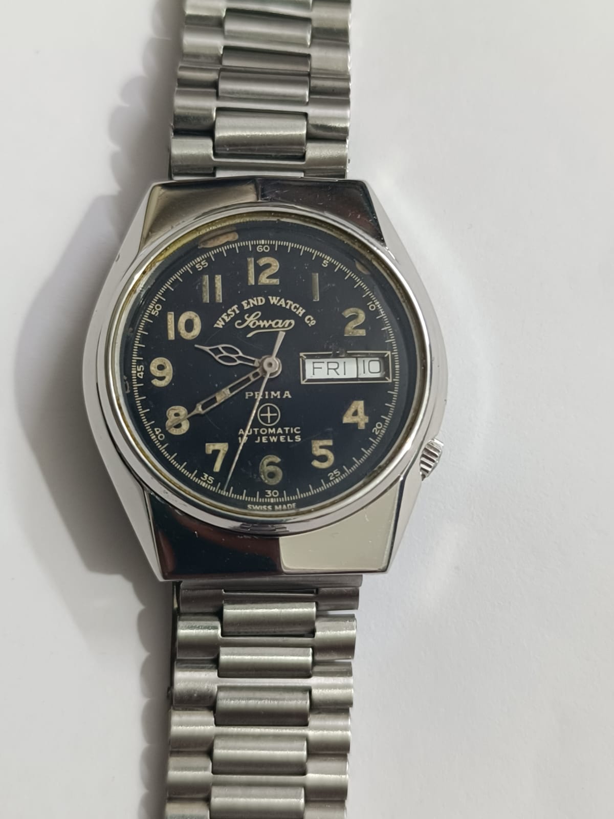 Vintage Westend sowar Automatic with beautiful Military Black Dial, in working condition,Size 36mm including Signed Crown, with Signed Buckle