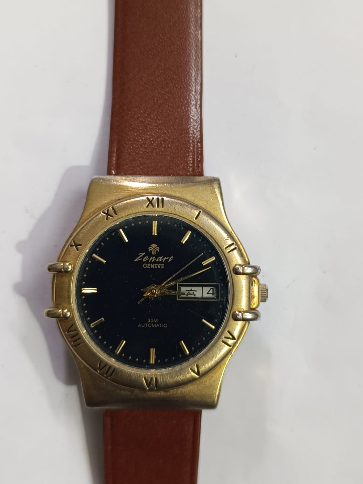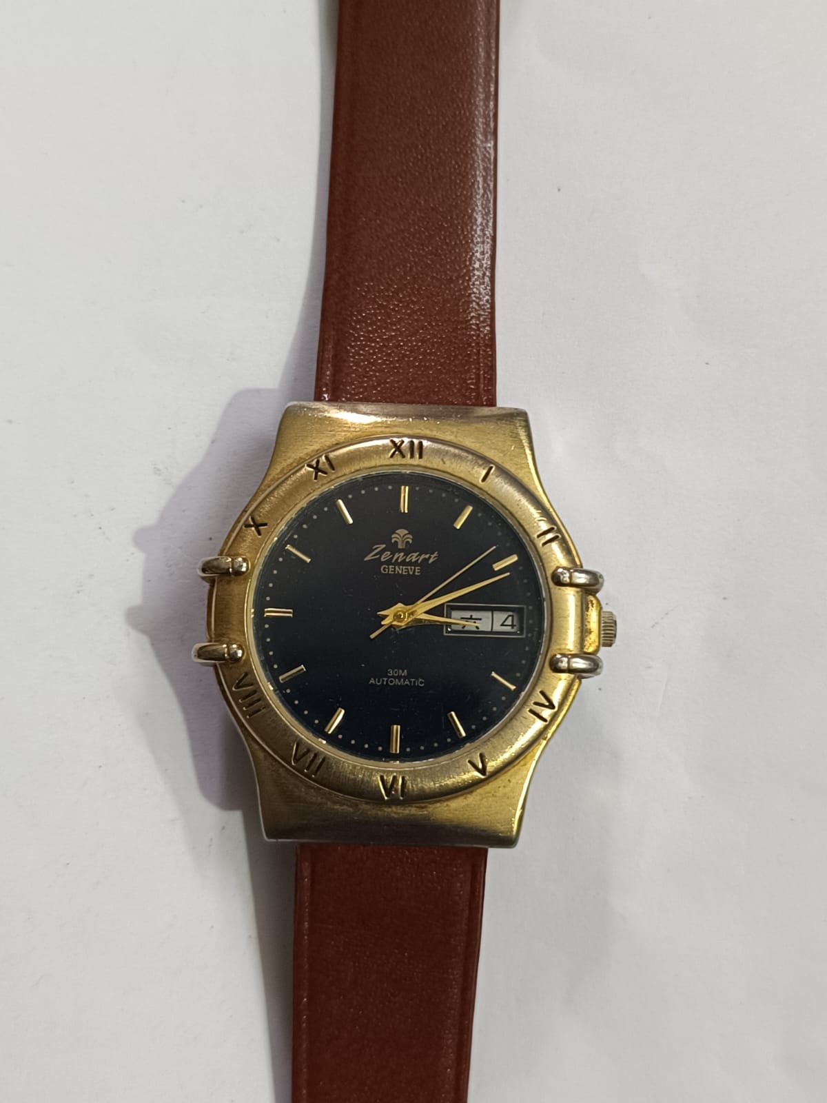 Vintage Zenart Automatic with Sunburst Black Dial and Open Glass Back,in working condition, size 38mm including crown, price 2340₹